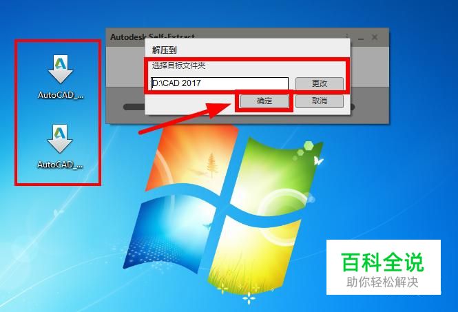 以CAD2017为例,各个版本安装流程一样。 下载好CAD 2017后解压,注意CAD 2017是有两个安装文件,缺少其中一个都解压不了,一个大小是1.97G,另一个大小是282.64M。 这两个文件都存在时才能完全解压,这里两个文件都存在,所以解压到自定义文件夹中,点击“确定”