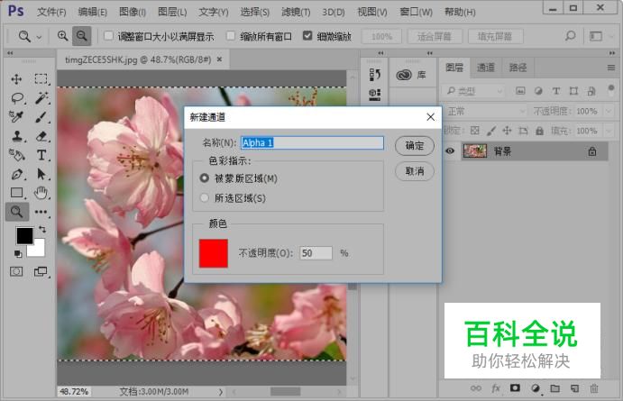 接着我们使用快捷键CTRL加a,全选整个画布并且拷贝选区内容;接下来我们新建一个通道,参数如图所示。