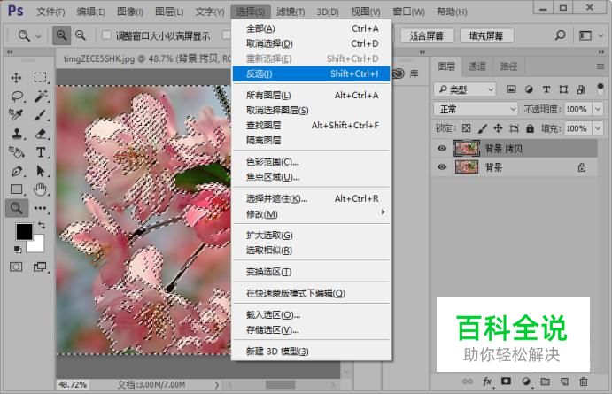 接着我们载入通道选区;然后选择图层面板,复制背景图层。