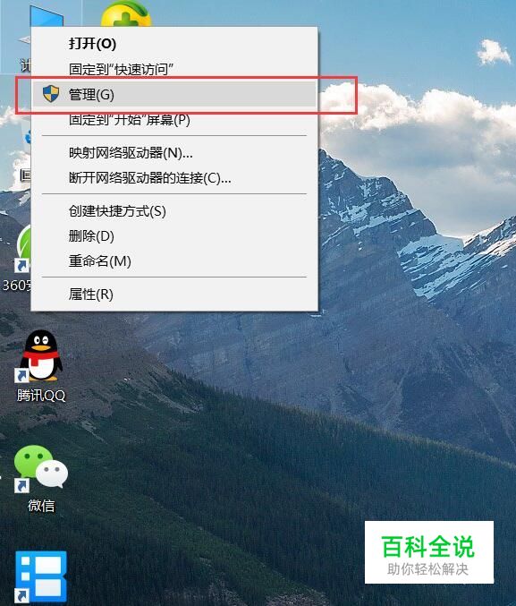 首先,我们对着桌面上的计算机图标击右键,右键选择“管理”选项。