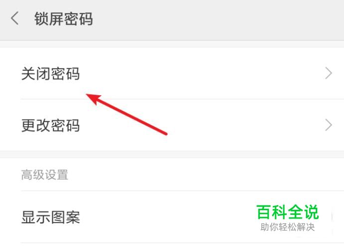 打开锁屏密码设置页面后,点击上面的‘关闭密码’选项就行了。关闭后,滑动锁屏功能就没有了。