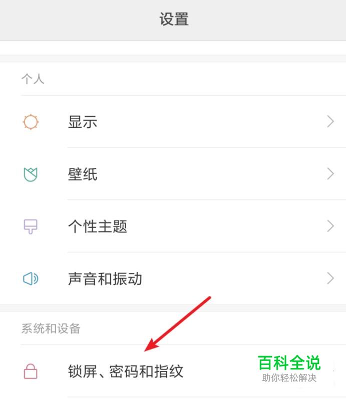 打开了设置页面,点击上面的‘锁屏,密码和指纹’项。