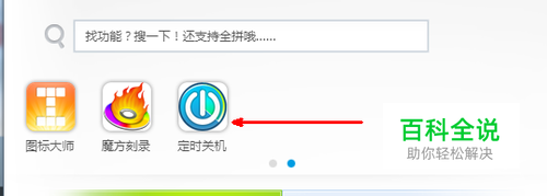 我们可以借助魔方软件的定时关机的组件来实现。首先下载安装本软件,过程不再赘述。 安装软件完毕,打开软件,点击软件上面的标签栏下面的灰色的点,如图,切换到另一个标签栏。