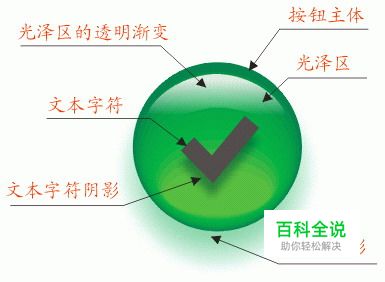 9.选择按钮主体,用交互式阴影工具加上柔和的阴影效果,按钮主体阴影颜色为:(HSB:120,100,100),在属 性栏上适当调节阴影的不透明度和羽化程度,注意羽化程度数值不要太低。结果如图8所示。