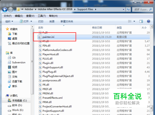 接下来我们把操作界面换成英文界面。进入AE的安装目录。(例如C:\Program Files\Adobe\Adobe After Effects CC 2018\Support Files),找到文件painter.ini文件