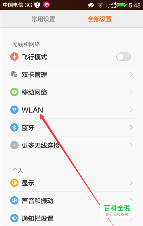 进入设置页面选择wlan。