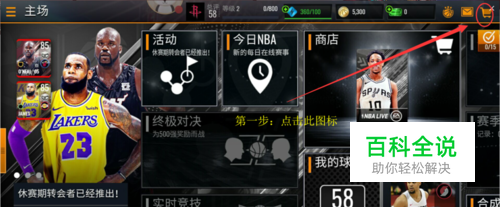 NBALive好球员获得途径一(第一步):游戏玩家进入游戏界面,点击界面右上角的购物车图标。如下图所示。