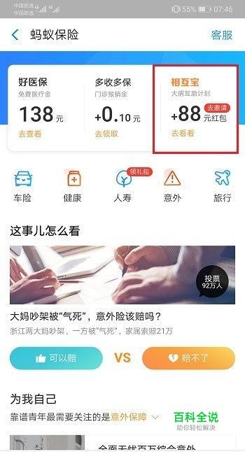 第一步打开支付宝,进去我的界面之后,点击蚂蚁保险->相互宝,进去之后,点击底部的我的客服,如下图所示: