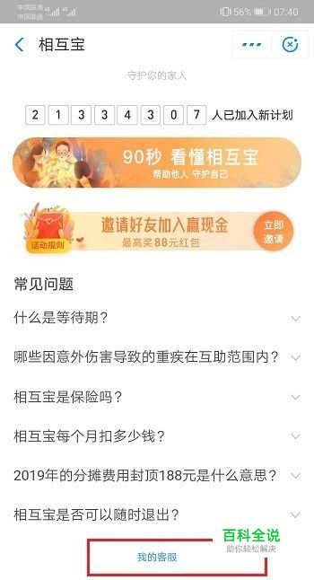 第二步进去我的客服界面之后,点击问题“相互宝的分摊费用和管理费”,如下图所示:
