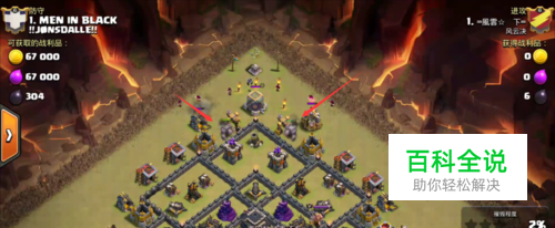 野猪血量降低了就有下治疗药水了,红色箭头所指的地方有一巨型炸弹,这个也是需要我们提前判断好的,可以看到那里比较空,所以很大几率是有炸弹的,所以我们就要在此地放治疗药水,以免野猪被团灭。