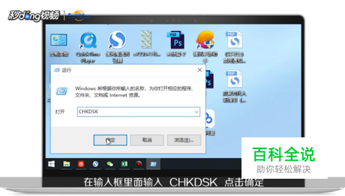 方法一:按“win+R”打开运行窗口,在窗口中输入“CHKDSK”,点击“确定”