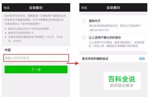 发送短信后进入“好友辅助流程”,输入对方手机号->点击【下一步】->通知对方确认身份->好友辅助验证,完成自助解封。(注:该项操作需要对方是您的微信好友。)