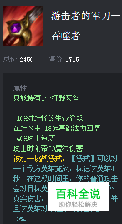 打野装备,实用吞噬者,和被动相辅相成的作用,谁用谁知道,但是提醒各位,别只想着刷层数,支援各路打出优势才是王道