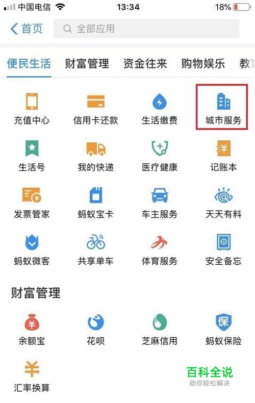 首先,打开支付宝app,进入全部应用,找到【便民生活】中的【城市服务】,并点击进入
