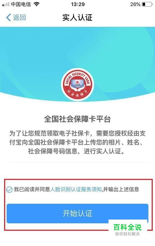 勾选“人脸识别认证服务须知”,点击开始认证