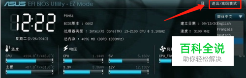 进入BIOS设置界面,可以点击右上角的高级模式/退出。