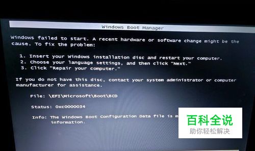 原因分析:系统BCD文件损坏