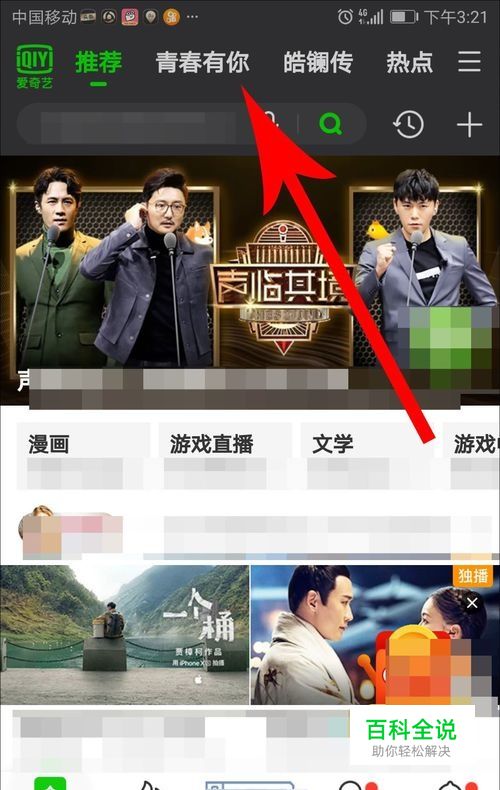 打开爱奇艺APP首页,点击界面顶部的“青春有你”,位置见下图