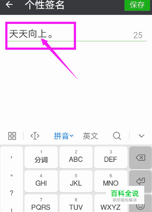 点击进去后,就可以编辑了。现在的个性签名还是之前的,现在我们来编辑下,如图所示。