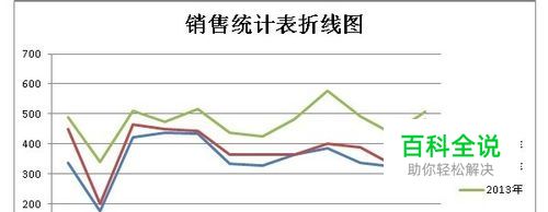 【主题鲜明】 我们看到这个新折线图是没有标明主题的,只有增加了主题的折线图才是完整的。 点中折线图的外边框,依次打开【布局】-->【图表标题】-->【图表上方】 这时我们看见图表区的上方已经建立了一个标题框,双击标题进行修改,我们改为“销售统计表”