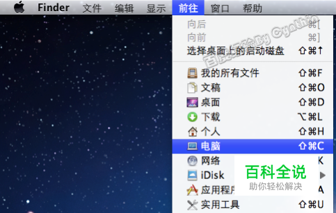 首先,还得通过“前往”进入“电脑”或文件夹: