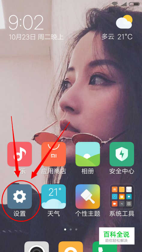 首先找天红米6 pro桌面上的“设置”并点击打开。