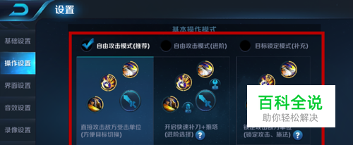首先我们新手进入游戏后先对游戏进行设置,根据自己的喜好和操作方式进行设置,大家使得舒服即可,这样可以让我们玩的时候,不会因为操作不好,而失败,我们主要设置技能的攻击方式,如图所示。