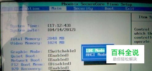 此时,需要重新启动电脑,按F2进入BIOS设置界面,选择Main选项,在最后一项的SATA Mode,按enter键修改模式为IDE Mode