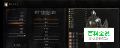 到底初始选择甚么职业? 今集一开始的职业有分为“战士、骑士、佣兵、传令者、小偷、刺客、魔法师、咒术师、圣职、一无所有”。大致上可以划分为“近战系(战士、骑士、佣兵、传令者、小偷、刺客、一无所有)”以及“魔法系(魔法师、咒术师、圣职)”,不同之处在于起始点数以及装备,要注意所有职业的装备都可以在往后的流程中拾取,选择起始职业只是有助于开局。 开局使用难度排行(由高至低) 1. 一无所有(木盾不能格反,变相强制双持棍棒) 2. 小偷(以致命一击作为输出核心,必须是掌握盾反和背刺技术的人才能用得好) 3. 圣职(虽然有回复神迹,但伤害型的神迹要到中期才能入手) 4. 魔法师(虽然魔法可以进行远程输出,但开始时元素瓶的数量太少,和回蓝的灰瓶难以平均) 5. 咒术师(理由与魔法师相等,可幸的是还保留一点近战能力) 6. 刺客(由于今集敏捷成为了重点,而刺剑亦大幅强化,只是防御力稍差,系列经验者优先) 7. 佣兵(基础能力很好,装甲也算硬,只是曲刀不是人人都会用) 8. 战士(简单易用,斧头初期高伤) 9. 骑士(初期最高防的职业,直剑也是今集的亲生儿子,不打算玩魔法的话是最好选择) 10. 传令者(长枪+大盾完美组合,挡着时可以抽插敌人,手残都会玩)
