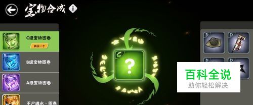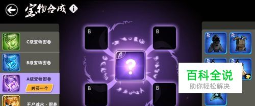 选择左侧的A级宝物图鉴,我们可以看到右侧需要四个B级宝物进行合成。