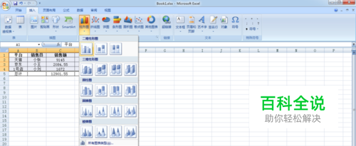 点击“插入”的子菜单“柱形图”,选择你喜欢的样式,这里以二维的样式为例子。