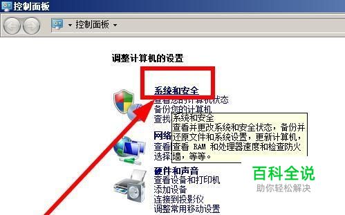在控制面板中,找到系统和安全选项,打开它