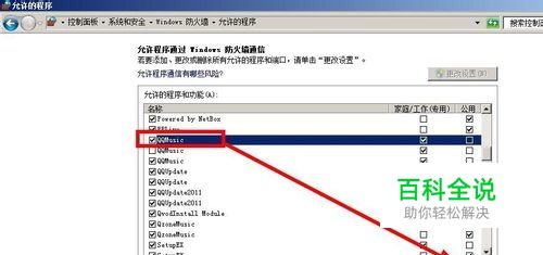 在打开的面板中on过,你可以看到一个列表,列表中包括所有可以连接网络的程序,我们举个例子,我经常使用qq音乐来听本地音乐,但是它总是自动联网,占有一定的上传网速,于是我就可以鼠标点击qqmusic,选中它,然后点击右下角的【删除】,这样qq音乐就无法访问网络了