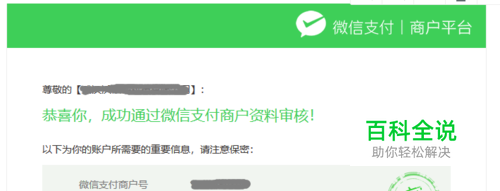 在你申请的过程中,会收到一封来自微信支付的邮件。邮件名称类似《恭喜您成功通过微信支付商户资料审核!》。邮件内容类似下图,图中有三个信息:微信支付商户号、商户平台登录帐号、商户平台登录密码。其中“微信支付商户号”就是我们需要的“商户ID”。