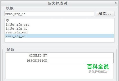 打开PROE软件 新建一个【制造】文件,不使用默认模板,点击【确定】之后,选择最后一个模板,再次【确定】。