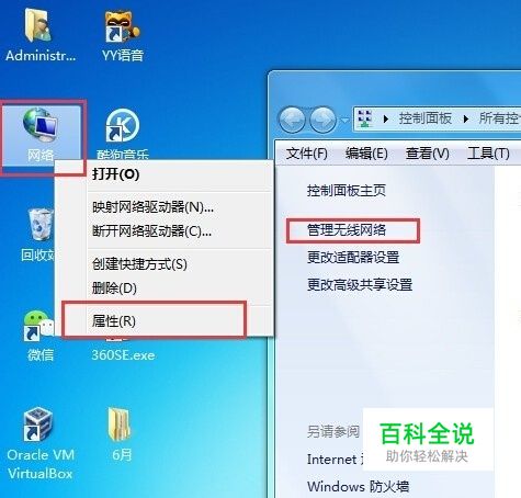 打开管理无线网络界面 右键网络图标--属性--管理无线网络