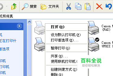 四、取消暂停打印。 方法是:在“打印机”窗口,右键单击在用的打印机图标,然后单击以清除“暂停打印”选项前的对号“√”。