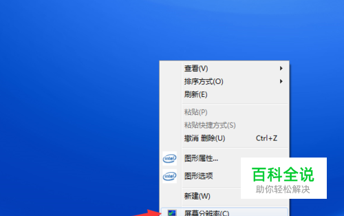 首先点击桌面空白处,选择“屏幕分辨率”