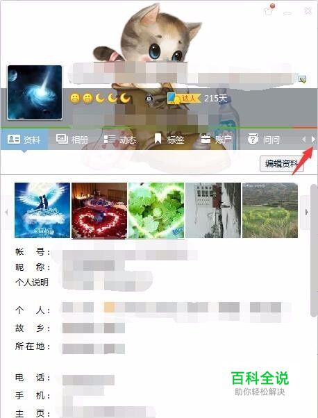 登录QQ,点击QQ头像,进入资料界面,如图所示: