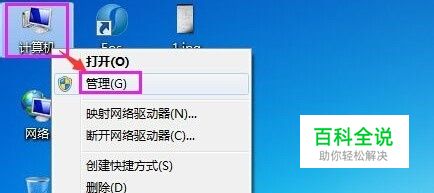 右键单击‘计算机’,在出现的菜单中选择‘ 管理’,进入 计算机管理对话框。