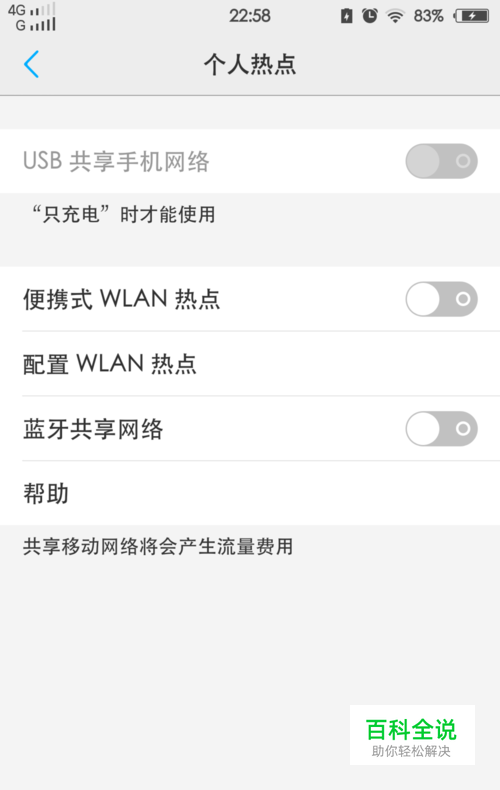 点开后会提醒你打开便携式热点将无法使用WLAN , 所以这时你要关闭WLAN。如果之前你的数据网络没有开的话,还会提醒您打开数据网络,所以说接下来用的网络就是你的数据网络(2g/3g/4g)