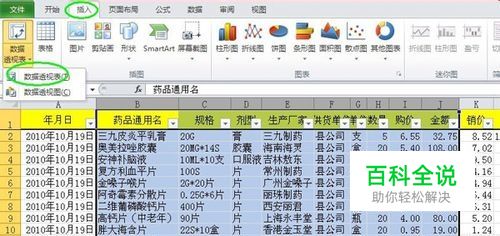 选择数据后,点菜单栏上面的,插入,点最左边有一个数据透视表旁边的三角符号,然后选择数据透视表