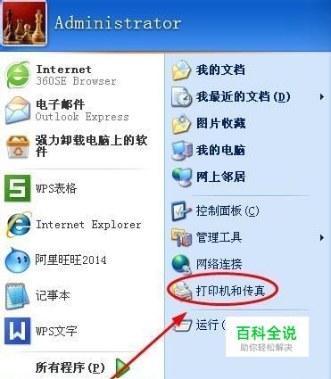 打开电脑运行程序然后选择右侧里面的【打印机和传真】功能。