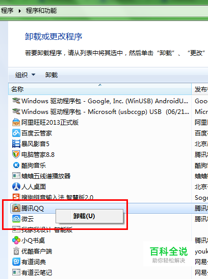 完全卸载QQ 两种方法:1.用“控制面板”卸载;2.用第三方软件,比如电脑管家等软件。