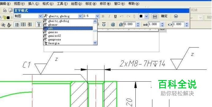 1.输入多行文字Mtext命令后,在文字编辑器中选择字体“gdt.shx”