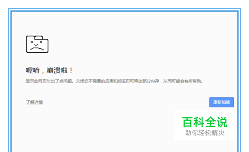 比如BAT的页面,都可能出现异常,但报错有可能不同,如下图是另一种报错现象,浏览器直接提示崩溃了,重启浏览器或电脑有可能能打开页面,但很频繁会再现,工行页面是100%出现。