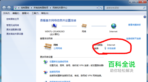 在已设置共享的电脑操作,查看IP地址,打开网络连接。