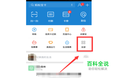 打开你的手机支付宝,选择“全部应用”。如果你的支付宝还没有给更新到新版本,还不能玩哦,必须要先更新到新版本。