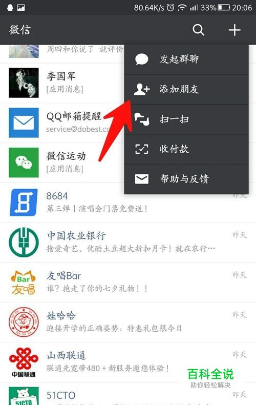 现在点击微信右上角“+”,然后选择“添加朋友”。