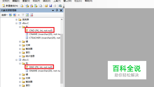 在如下图中呢,这里我们是有三个表:S、C、SC这三个表中的S、C表中是有主键的:SNO、CNO这里的SC中同样有SNO、CNO,这里我们是需要为SC中的SNO、CNO添加外键的。利用这三个表来做以示范
